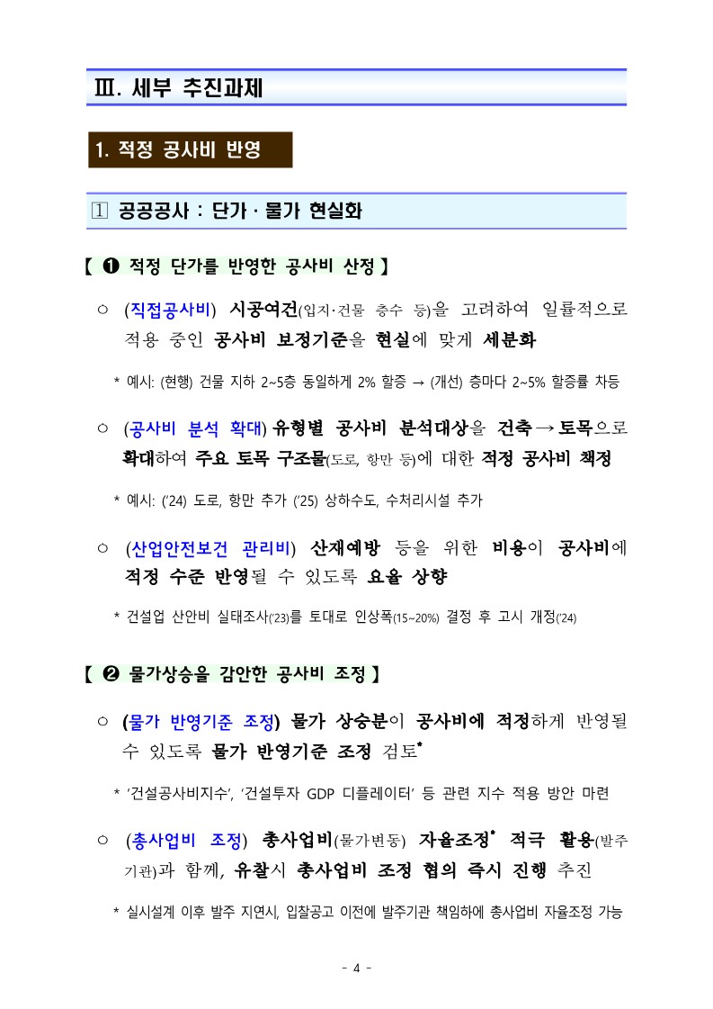 1. 적정 공사비 반영