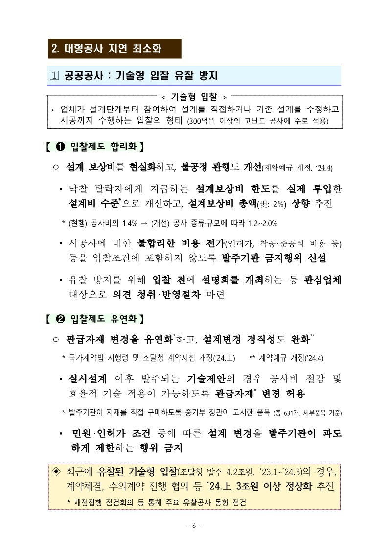 - 턴키 등 기술형 입찰로 추진되는 대형 국책사업의 정상 추진을 위해 입찰제도를 합리화 유연화 합니다.