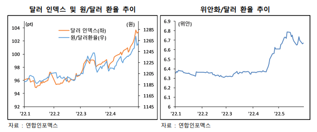 - 여전히 지속되고 있는 러-우크라이나 전쟁 등 대외 불확실성이 원/달러환율의 하단을 지지, 6월에도 달러화 강세 환경이 지속될 것으로 예상