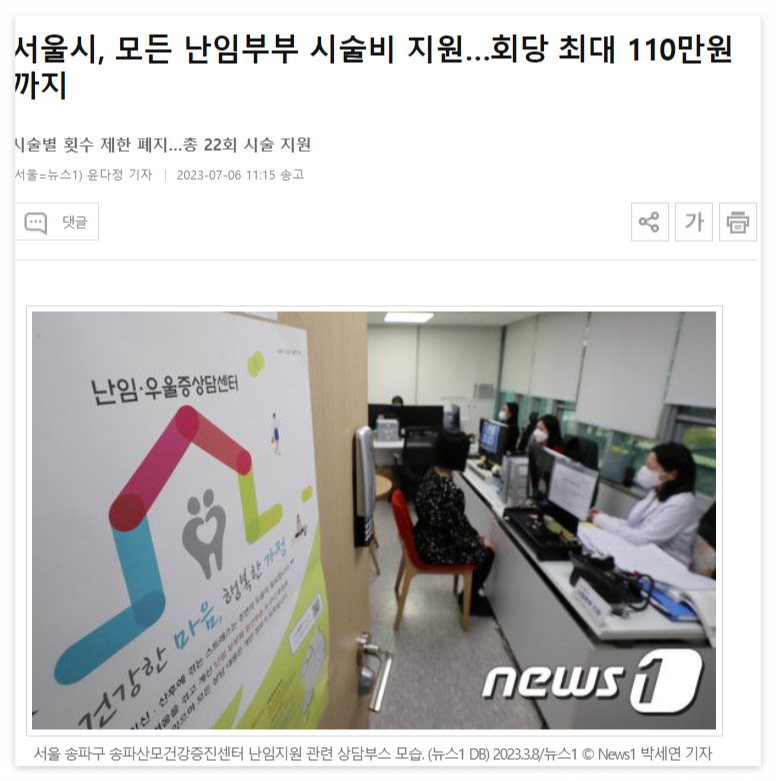 그래서 서울시, 경기도 등 에서 소득 기준 없이 모든 난임부부에게 시술 종류 상관없이 시술비를 지원한다고 합니다!