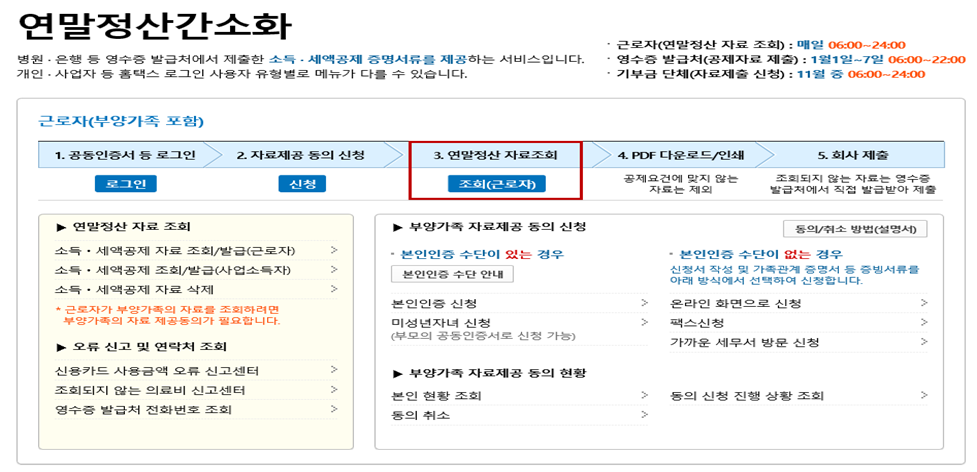 2. 연말정산 간소화서비스에서 조회되지 않는 자료는 해당 발급기관에서 직접 발급받아 제출하여야 합니다.