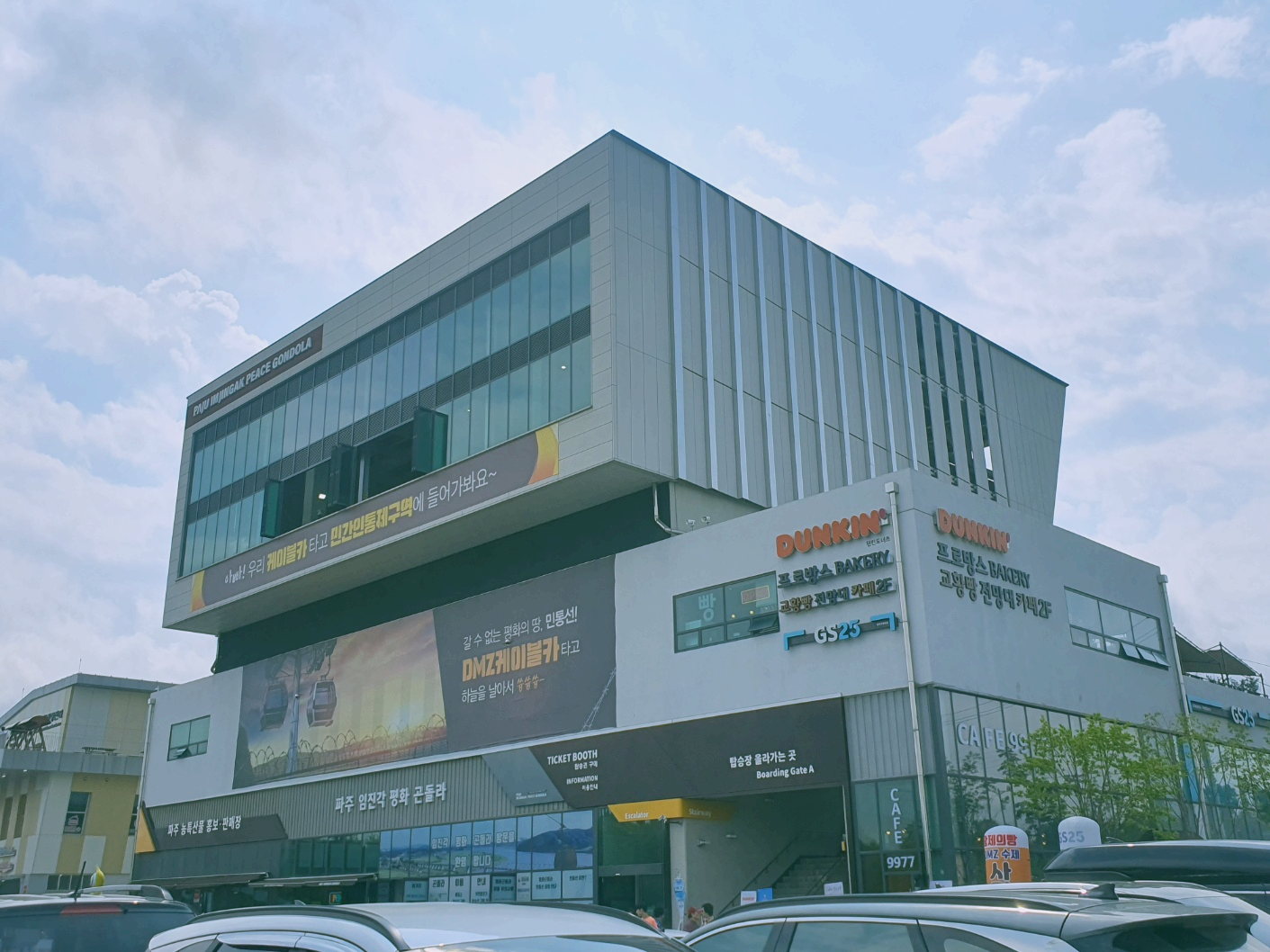 차에서 내려 바로 보이는 건물 '파주 임진각 평화 곤돌라'에요~