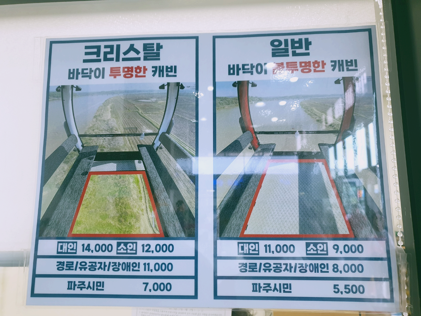 저희는 일반으로 탔는데, DMZ케이블카는 가는 동안 논밖에 없어서 바닥이 투명할 필요가 없답니다~