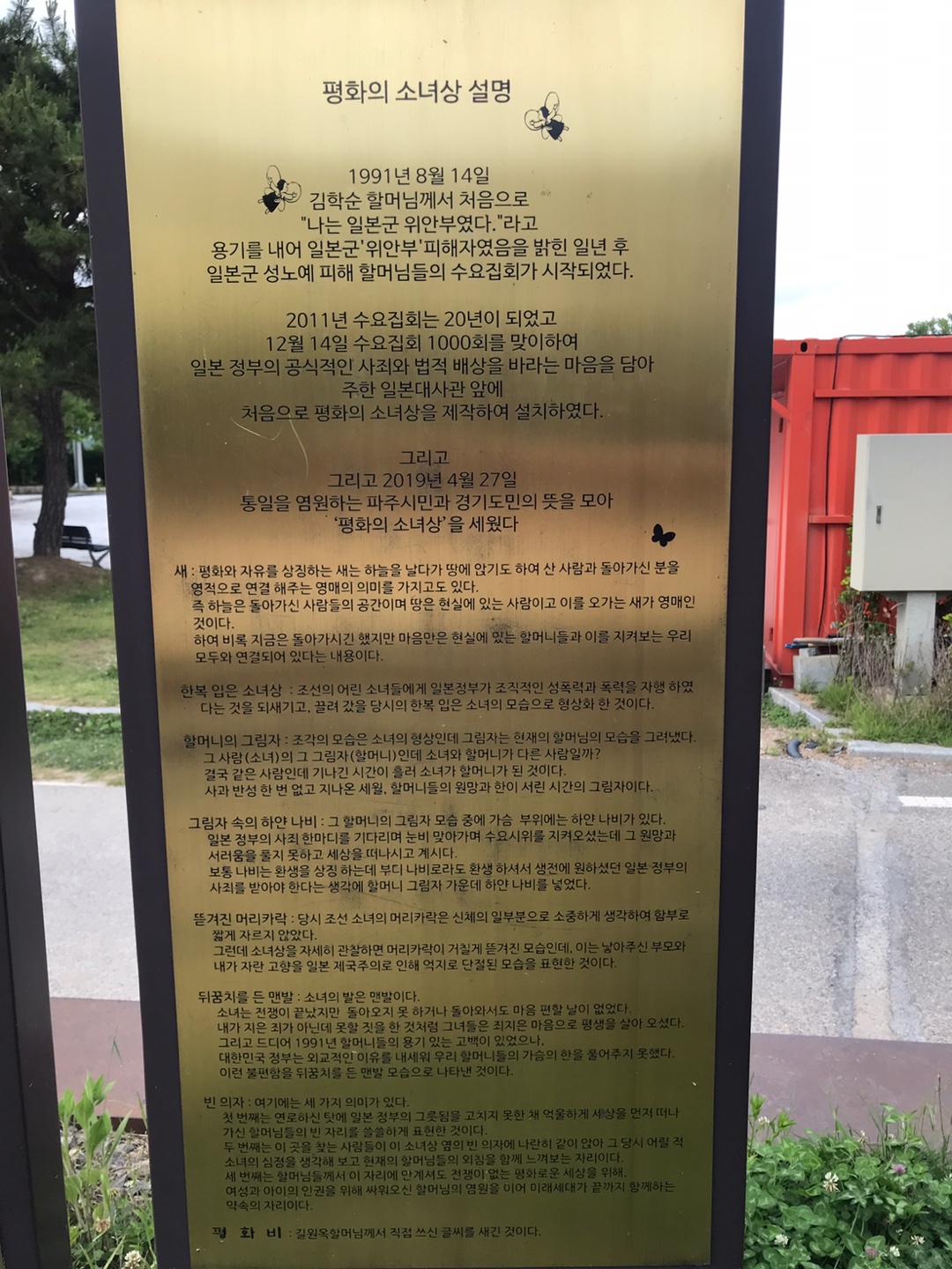 평화의 소녀상이에요~ 소녀상에 입혀진 의미들을 알게 되니 코끝이 찡해져서 잊지 않기 위해 사진으로 담아봤어요~
