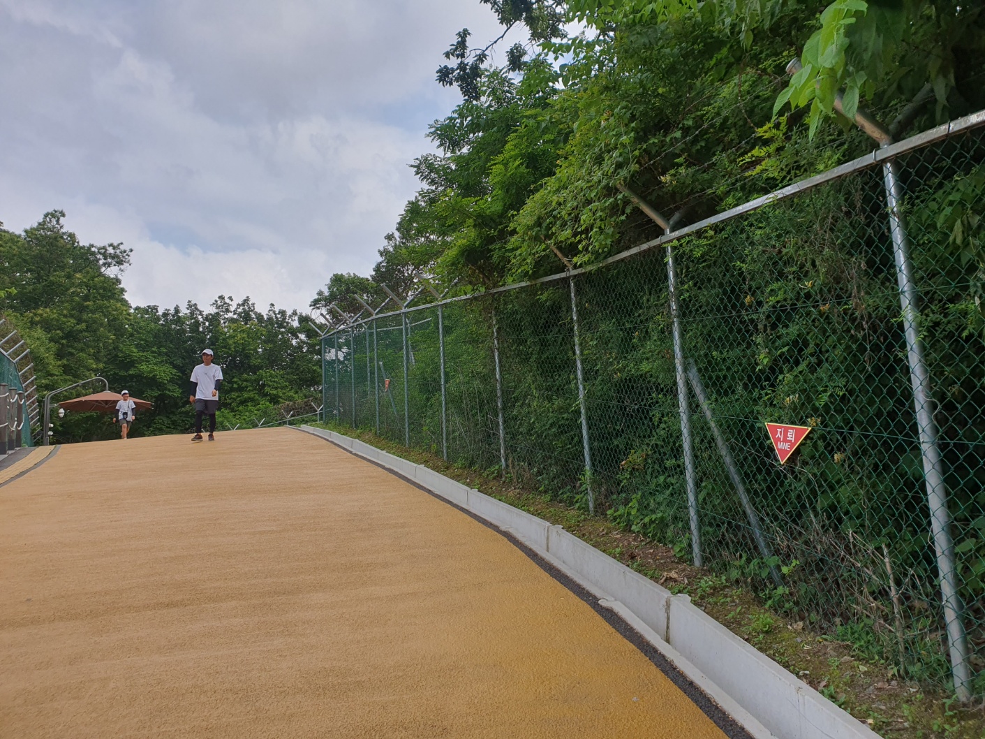 걸어 올라가는 길, 안전을 위해 철조망과 지뢰 표시가 설치 되어있네요~