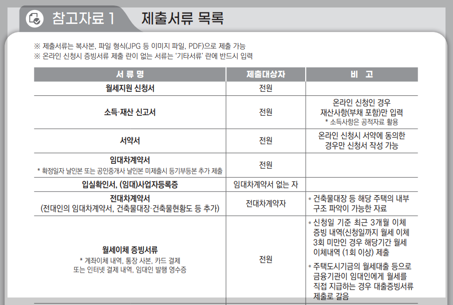 청년월세지원금 필수 제출 서류는 가족관계, 대리신청 여부, 임대 형태 등에 의해 필요한 서류가 달라질 수 있습니다.