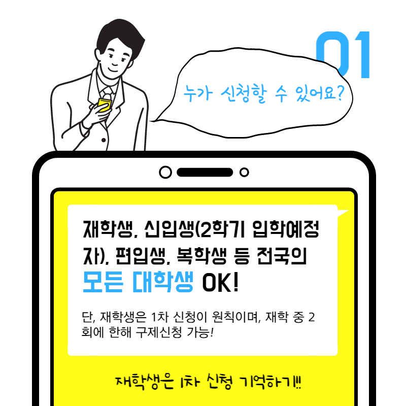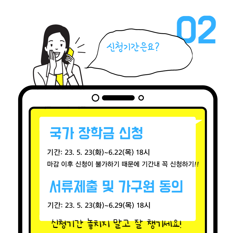 신청은 재단 누리집(www. kosaf.go.kr)과 모바일 앱으로 신청할 수 있습니다!