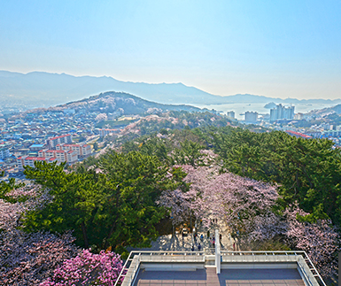 제황산공원 정상에 위치한 진해탑에서는 진해 전역과 푸른 바다, 그리고 벚꽃이 어우러진 장관을 감상할 수 있습니다. 약 365개의 계단을 올라야 하지만, 정상에서 내려다보는 벚꽃이 뒤덮인 진해의 모습은 그야말로 환상적입니다.